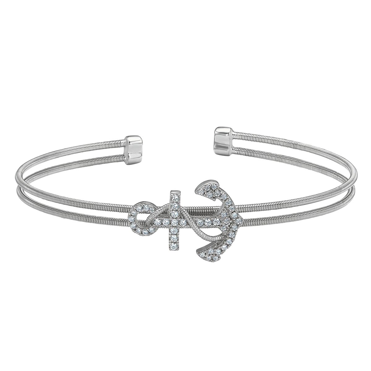 Bella Cavo Cubic Zirconia Anchor Flexible Cuff Bracelet in Sterling Silver