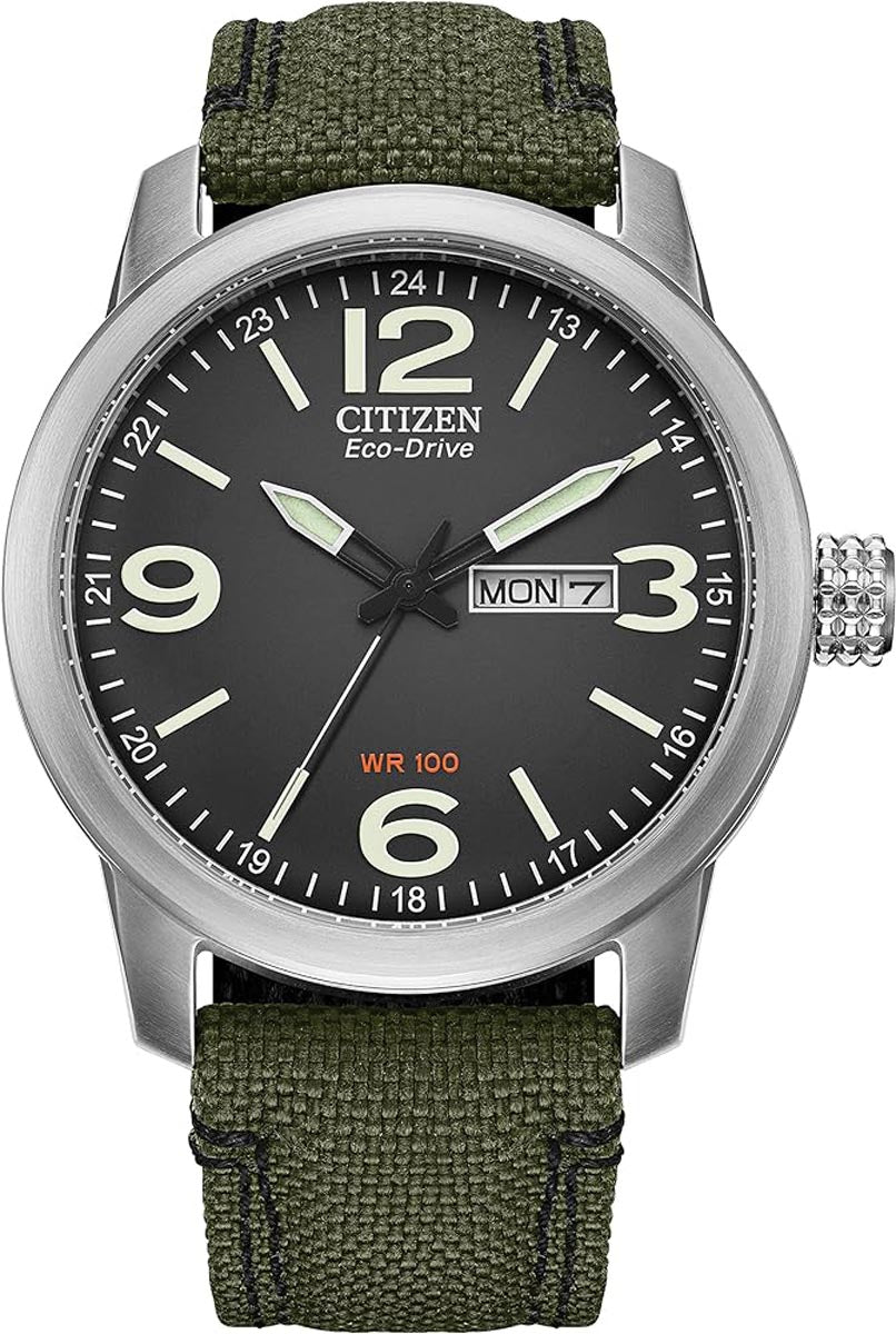 Citizen Military Mens Watch with Black Dial and Green Canvas Strap (eco-drive movement)