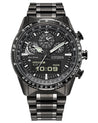 Citizen Promaster Skyhawk U830 Chronograph Watch with Black Dial and Gray Stainless Steel Bracelet (eco-drive movement)