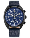 Citizen Sport Casual Chronograph Watch with Blue Dial and Black Leather Strap (eco-drive movement)