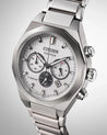 Citizen Zenshin Chronograph Watch with White Dial and Titanium Bracelet (eco-drive movement)