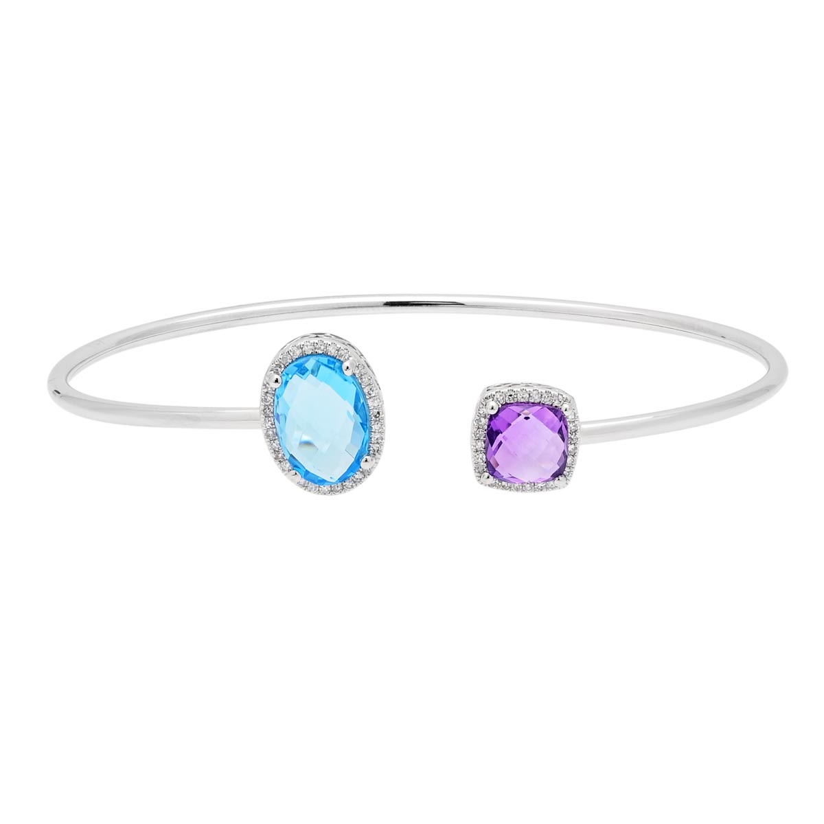 Dabakarov Cushion Cut Amethyst and Oval Blue Topaz Cuff Bracelet in 14kt White Gold with Diamonds (1/7ct tw)