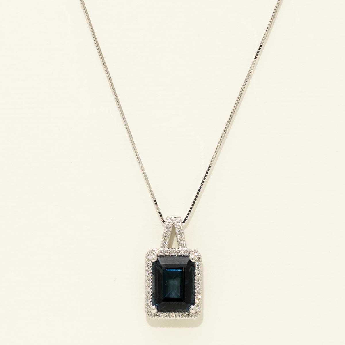 Dabakarov Emerald Cut London Blue Topaz Necklace in 14kt White Gold with Diamonds (1/10ct tw)