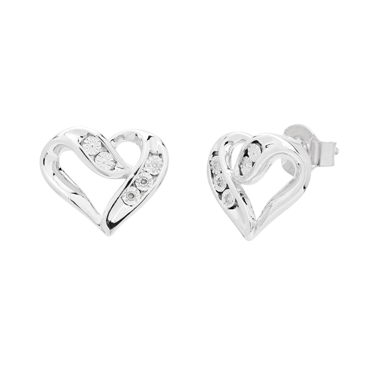 Diamond Heart Stud Earrings in Sterling Silver (.02ct tw)