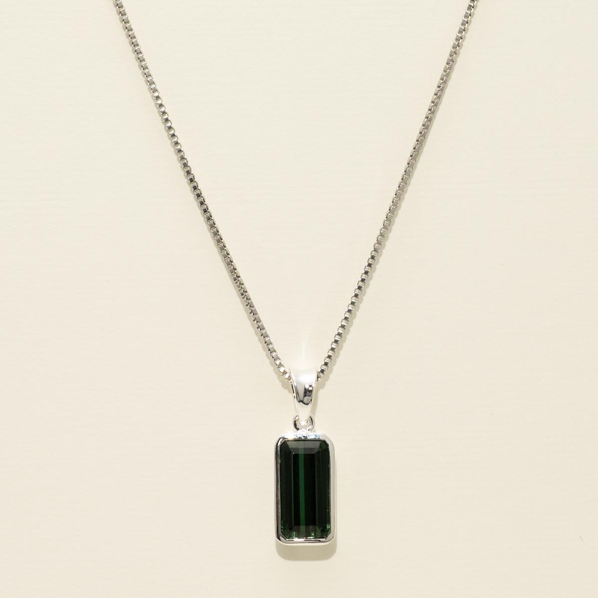 Emerald Cut Green Tourmaline Bezel Necklace in Sterling Silver