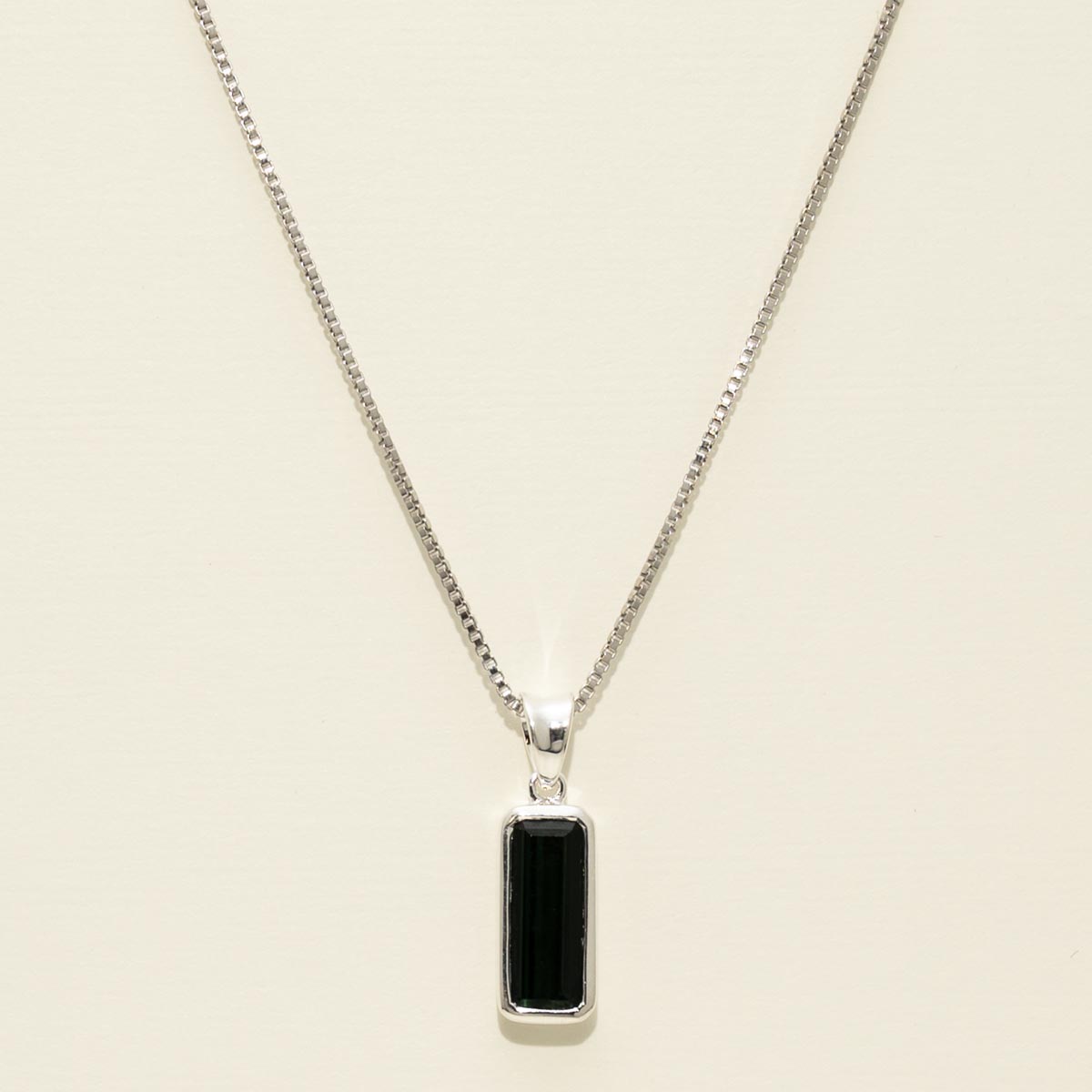 Emerald Cut Green Tourmaline Bezel Necklace in Sterling Silver