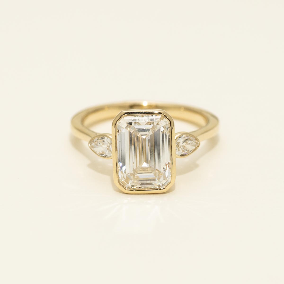 Lab Grown Emerald Cut Diamond Bezel Engagement Ring in 14kt Yellow Gold (3 1/4ct tw)