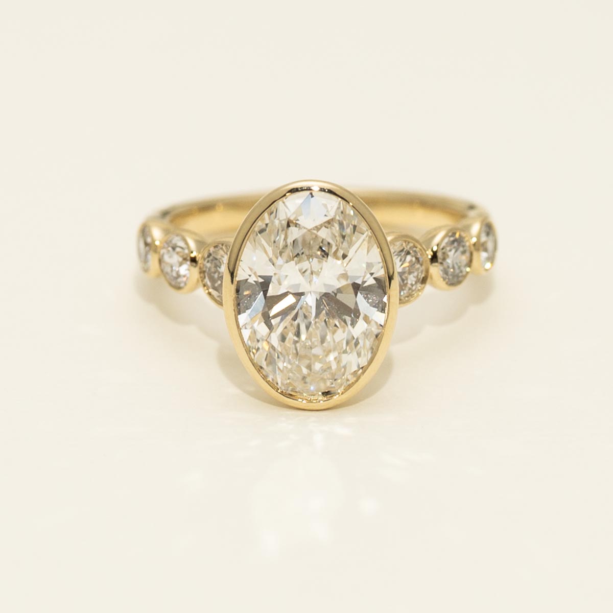 Lab Grown Oval Diamond Bezel Engagement Ring in 14kt Yellow Gold (3 3/4ct tw)