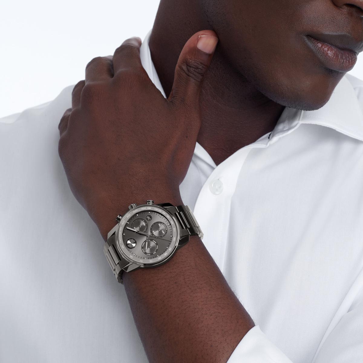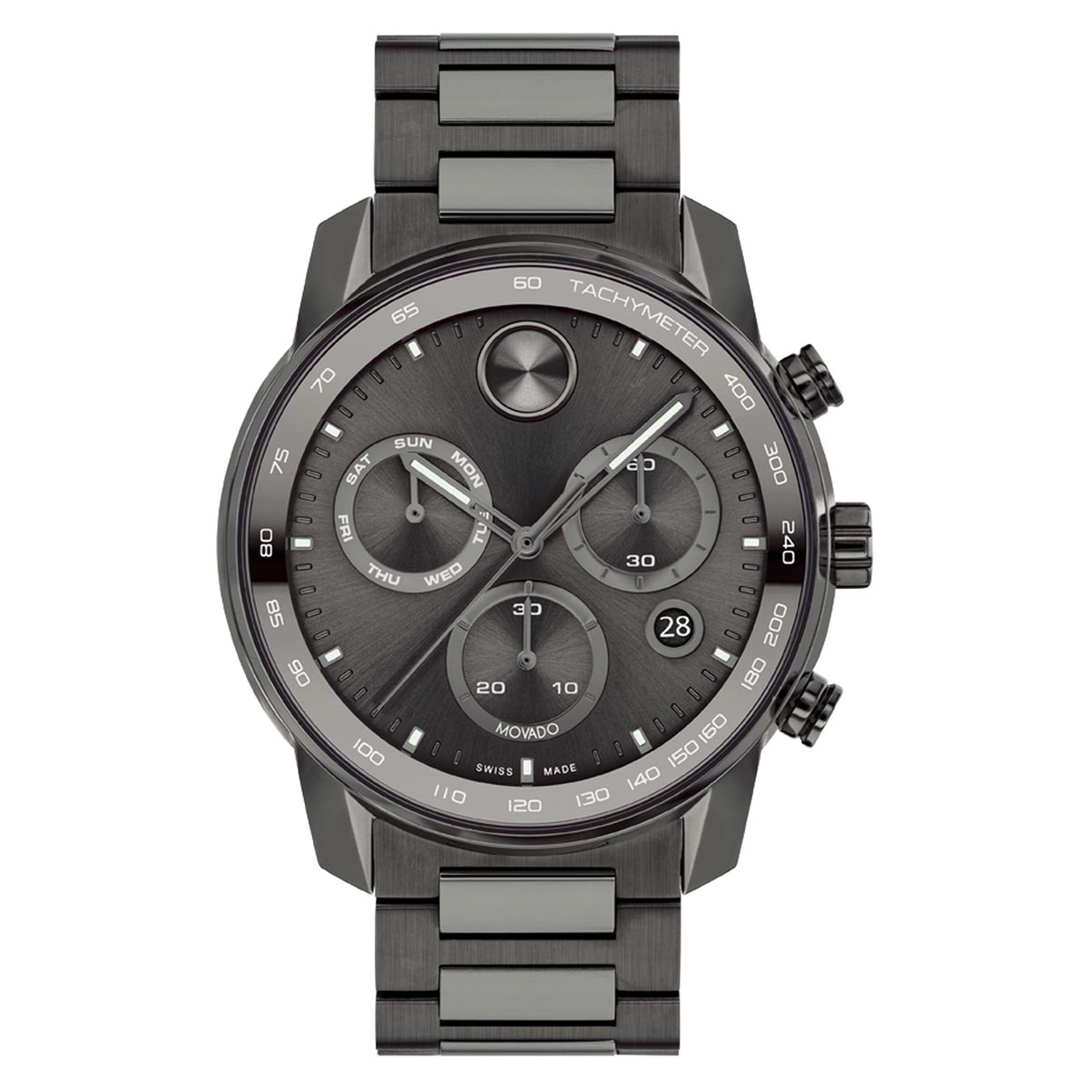 -Enjoy free cleaning and inspection at any Day's location for life of this Movado black toned chronograph watch