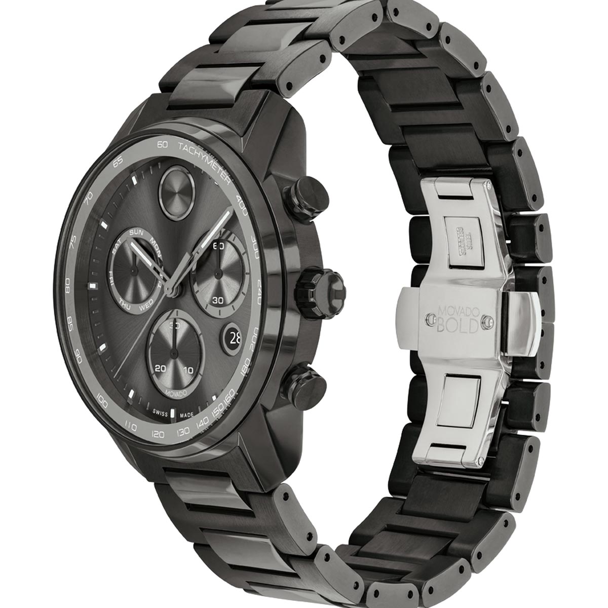 Movado Bold Verso Mens Chronograph Watch with Black Dial and Black Ion Plated Bracelet (Swiss quartz movement)