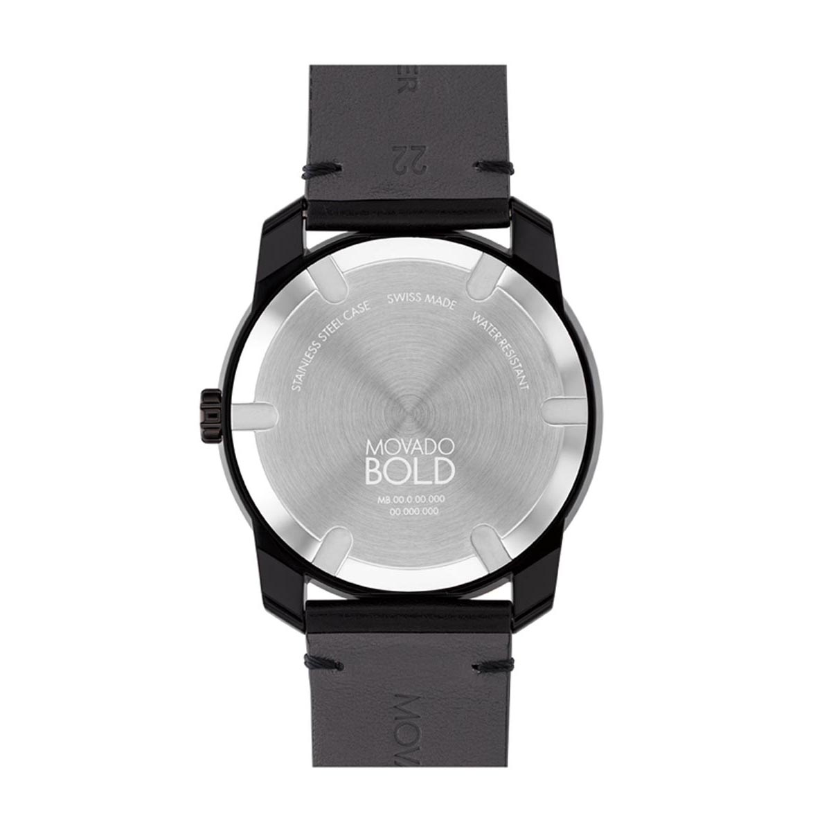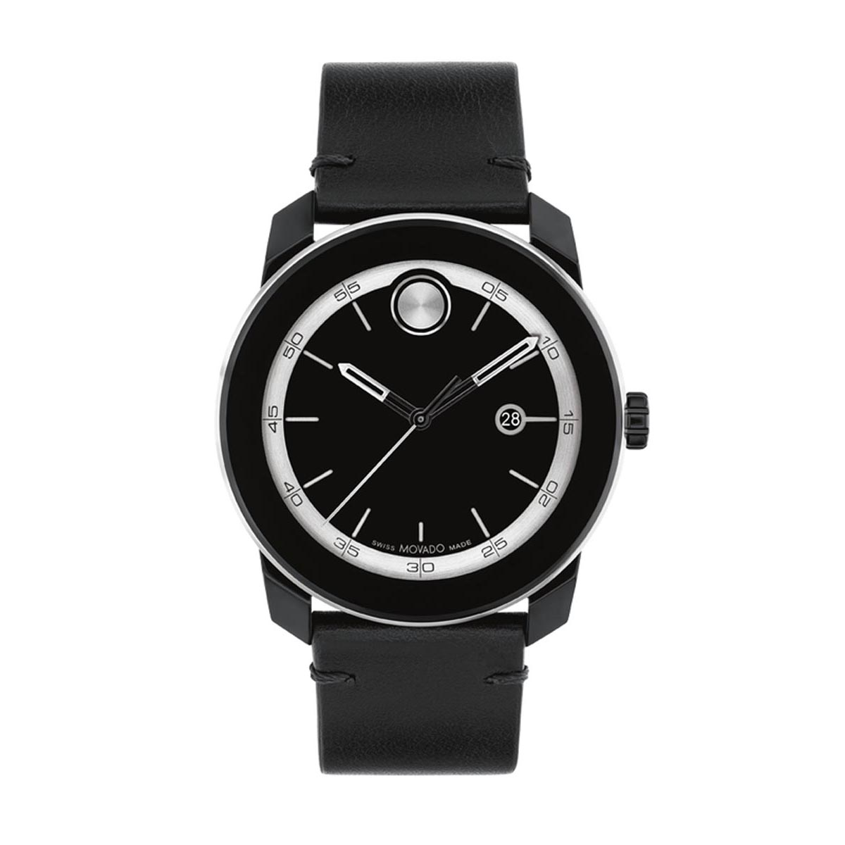 Movado Bold TR90 Mens Watch with Black and White Dial and Black Leather Strap (Swiss quartz movement)