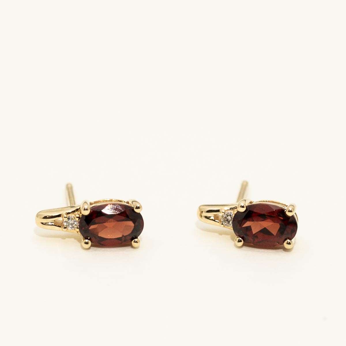 Oval Garnet Earrings in 10kt Yellow Gold with Diamonds (.02ct tw)