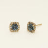Parlé Cushion Cut Montana Sapphire Halo Stud Earrings in 14kt Yellow Gold with Diamonds (1/7ct tw)