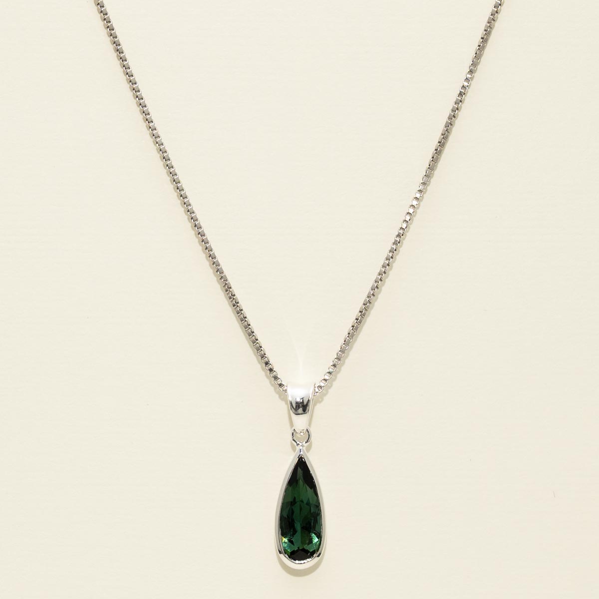 Pear Shape Green Tourmaline Bezel Necklace in Sterling Silver