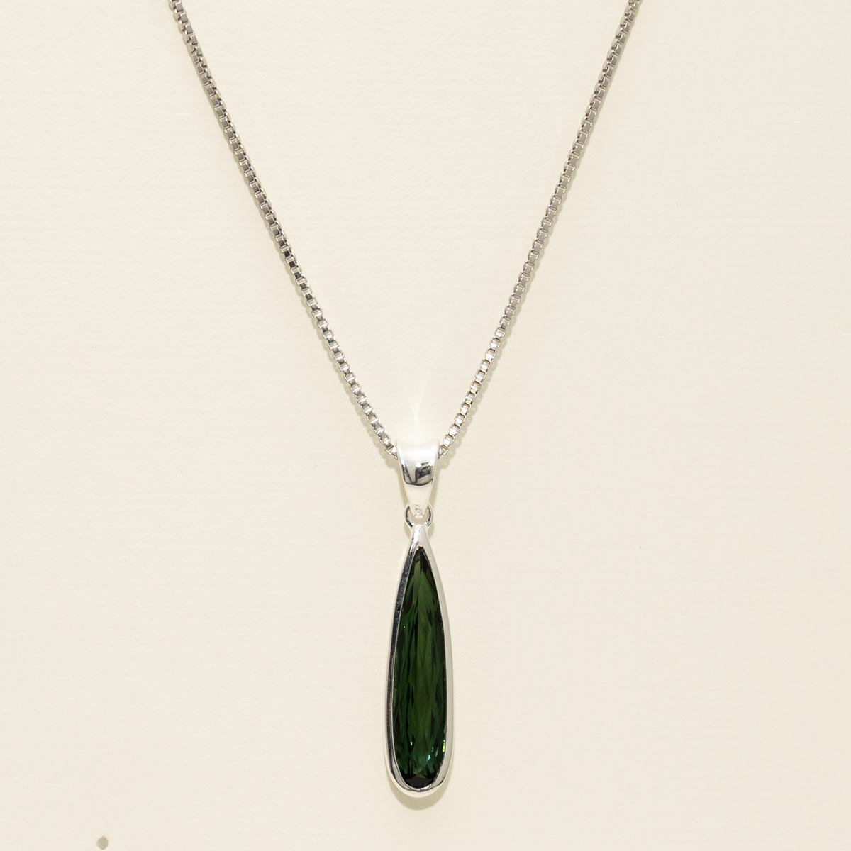 Pear Shape Green Tourmaline Bezel Necklace in Sterling Silver