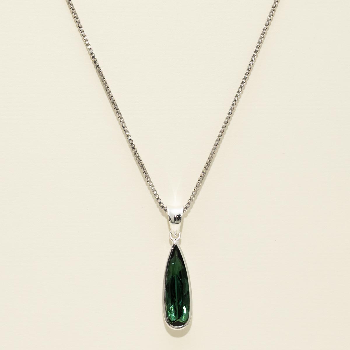 Pear Shape Green Tourmaline Bezel Necklace in Sterling Silver