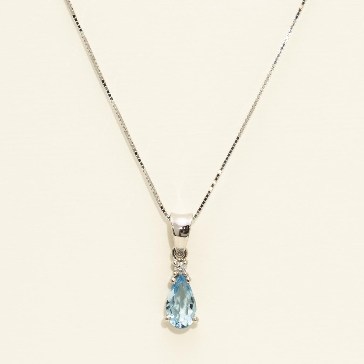 Pear Shaped Aquamarine Necklace in 14kt White Gold with Diamonds (.01ct tw)