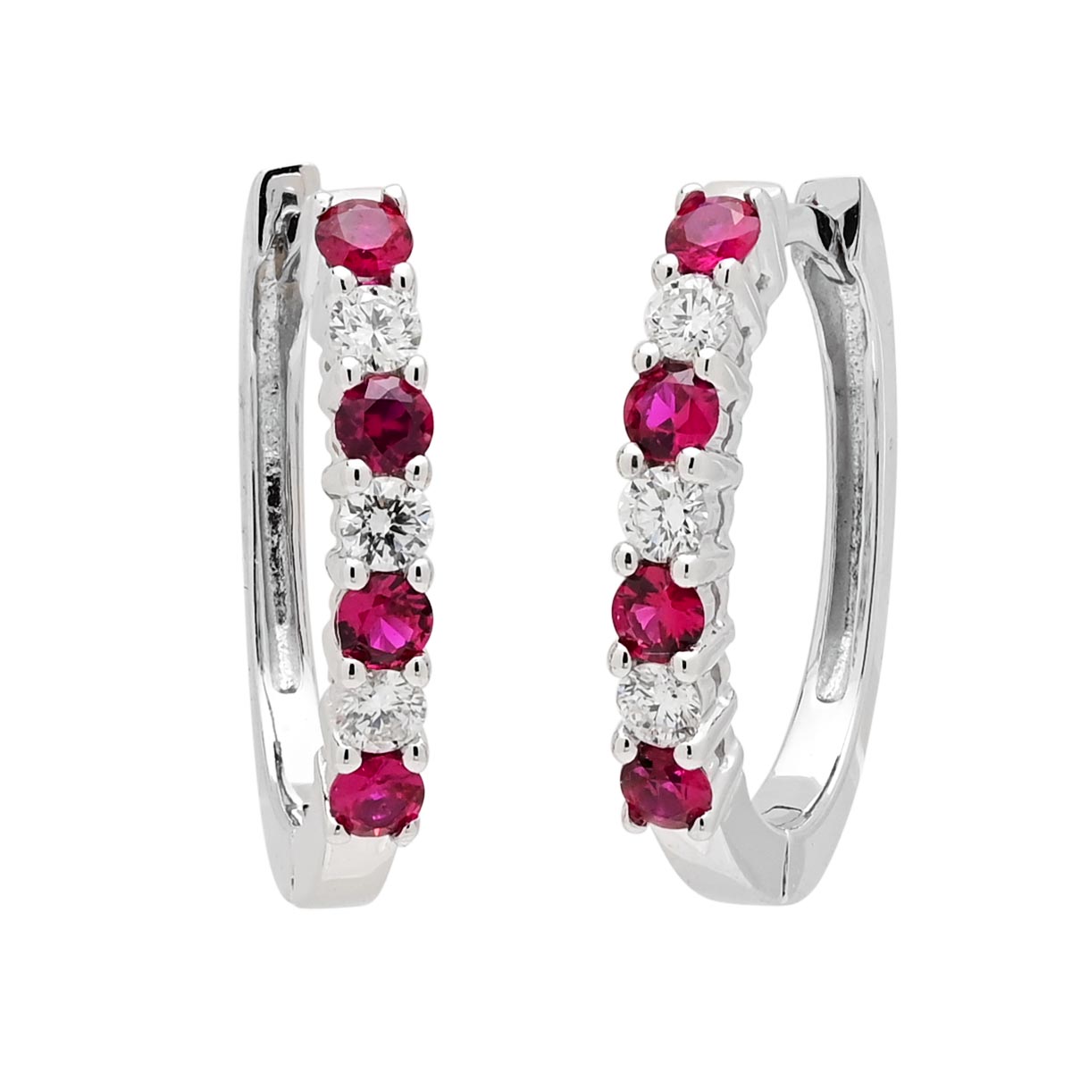 Ruby Hoop Earrings in 18kt White Gold with Diamonds (1/5ct tw)